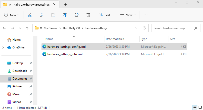 - Navigate to Documents\My Games\{GAME}\hardwaresettings\ folder.