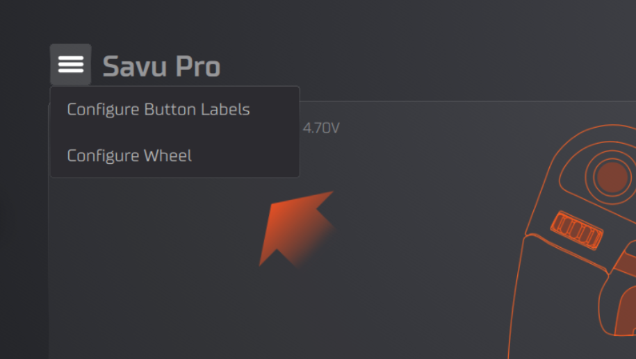 - In top left corner press "hamburger" menu which will open the list of option and press Configure Wheel button