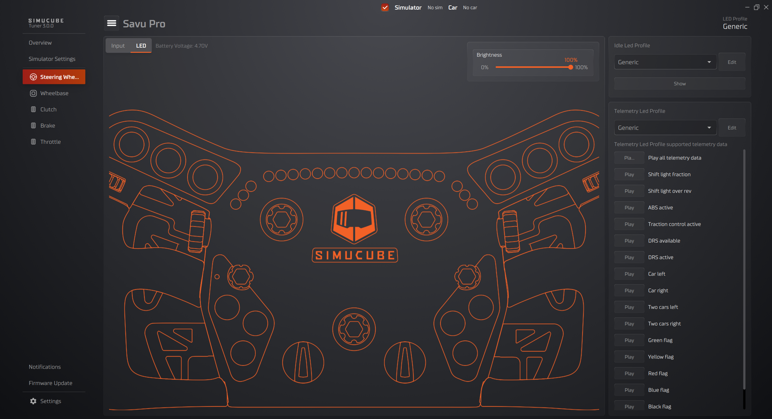 - Select Steering Wheel from the device list in overview or in left side panel