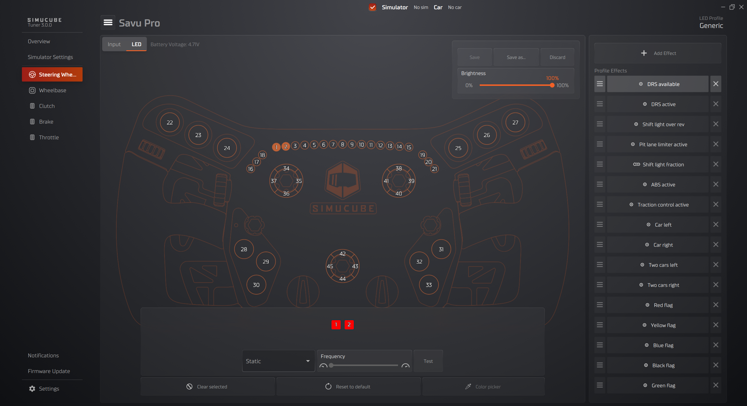 - In top right corner of the LED tab view, you may select the desired LED profile from the drop-down menu.
