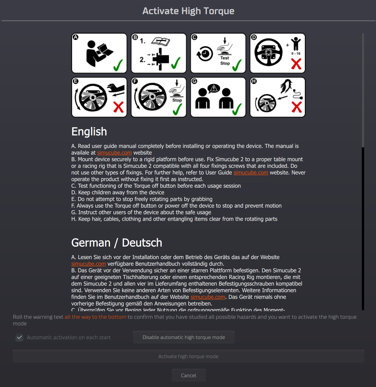 - Scroll all the way down to unlock the Activate high torque mode button.